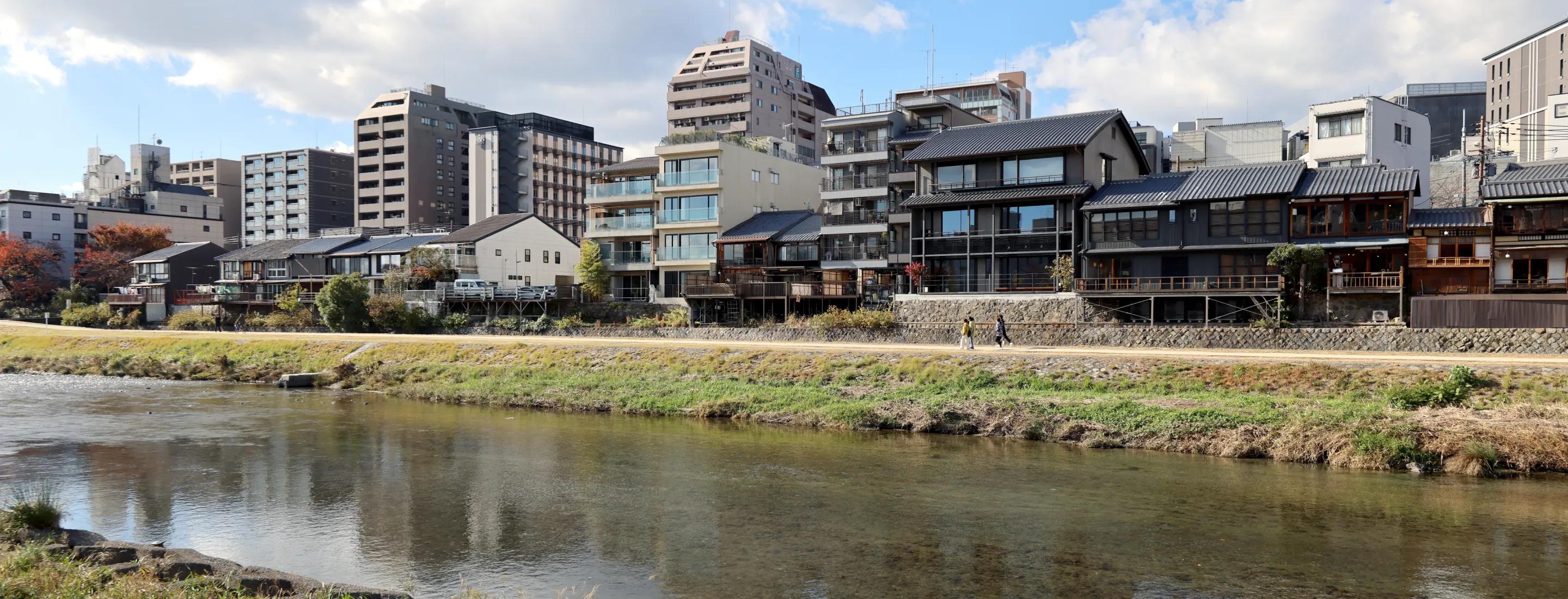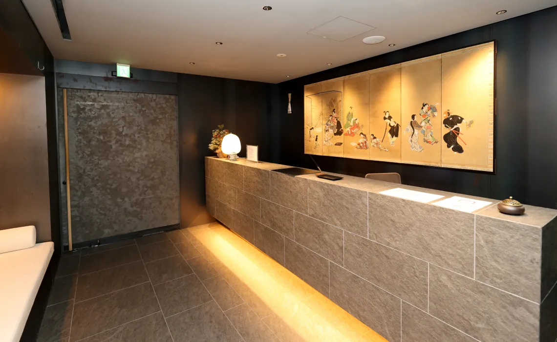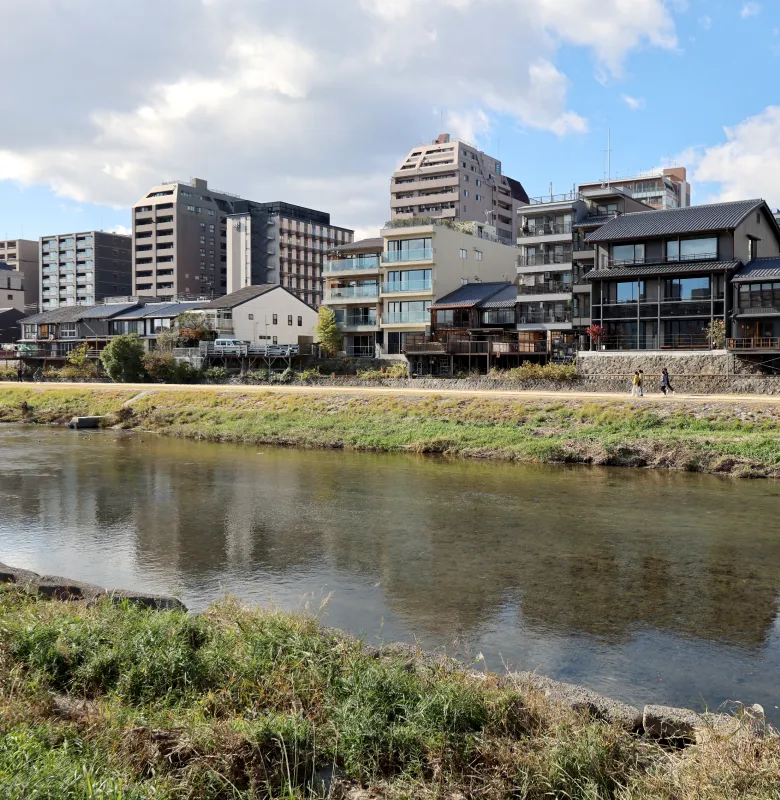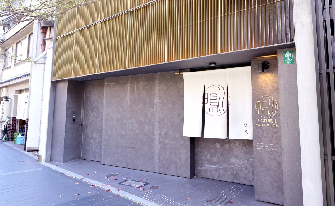 The entrance to this secluded inn tucked away along the Kamo River has a very simple and relaxed atmosphere.