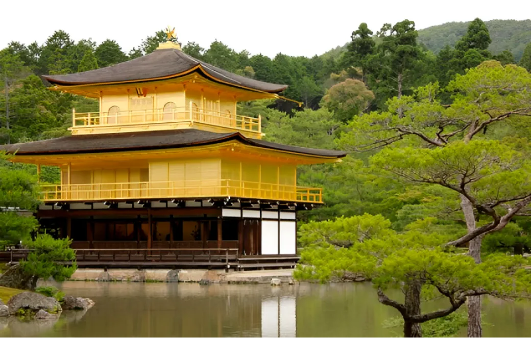 その美しい金色の建物が池に映る景色が印象的。四季折々の風景が楽しめます。