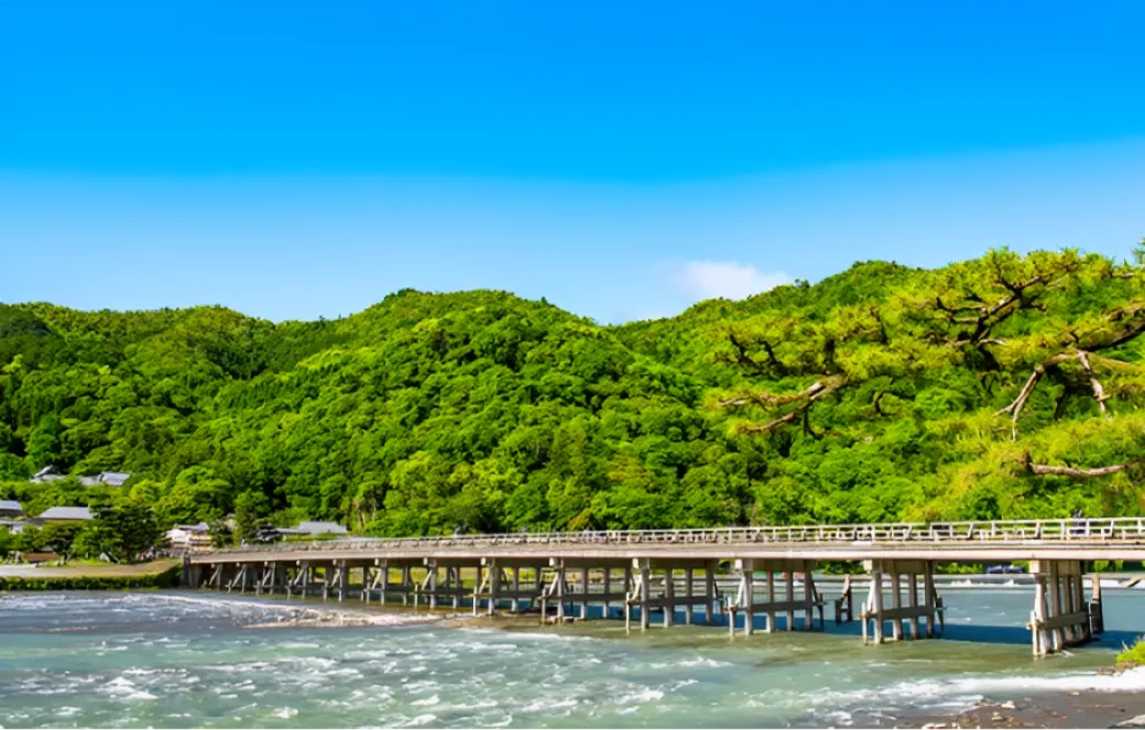 自然が豊かで、渡月橋や竹林の小径が人気。保津川下りも楽しめます。