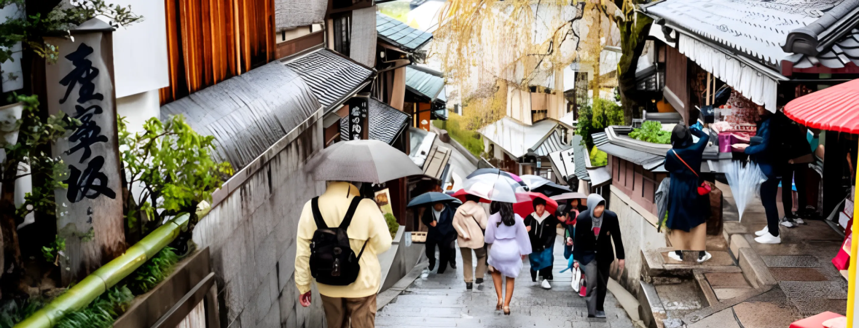 雨に濡れる先斗町や木屋町は、京都らしい風情に満ちています。狭い路地や川沿いを散策し、暖かいお店で食べ歩きをするのも雨の日ならではの楽しみ方です。