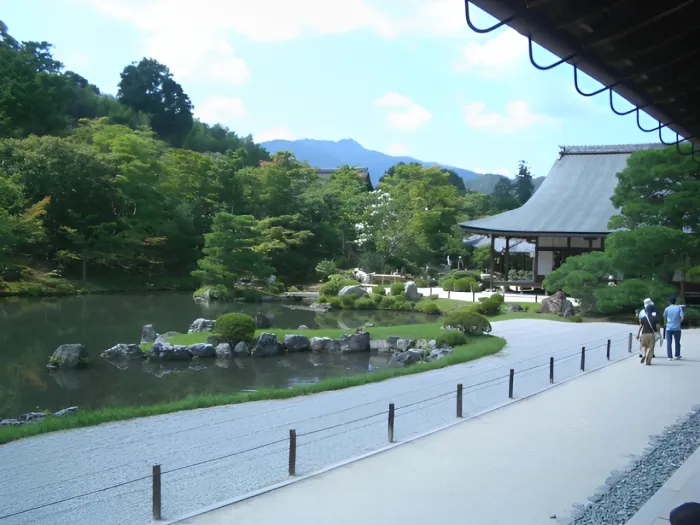 天龍寺の広大な庭園は、季節ごとの花々や木々が美しく整えられています。庭園内にはベンチもあり、池を眺めながら休憩ができるスポットも。庭園の景観と歴史的な建物をゆったりと楽しめます。